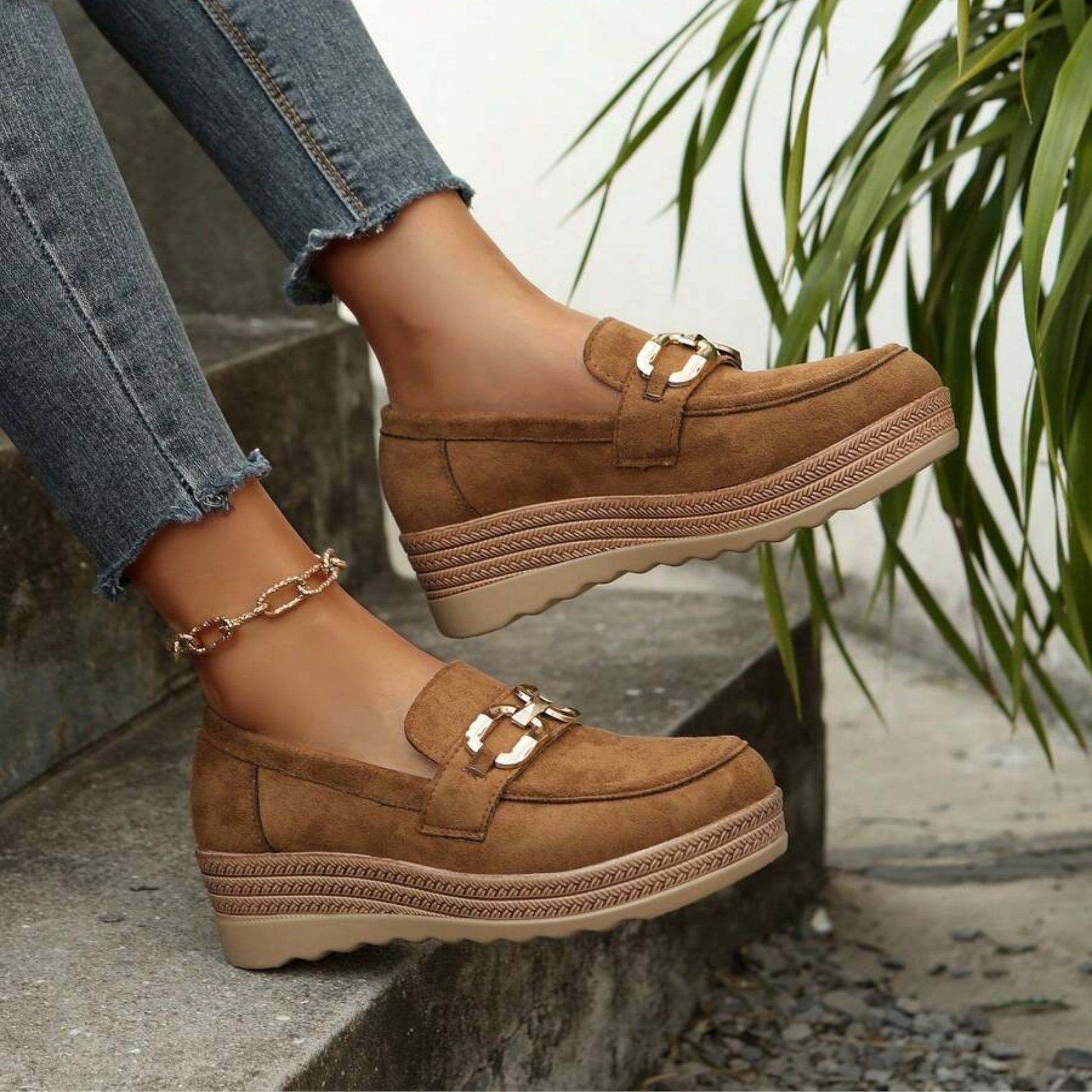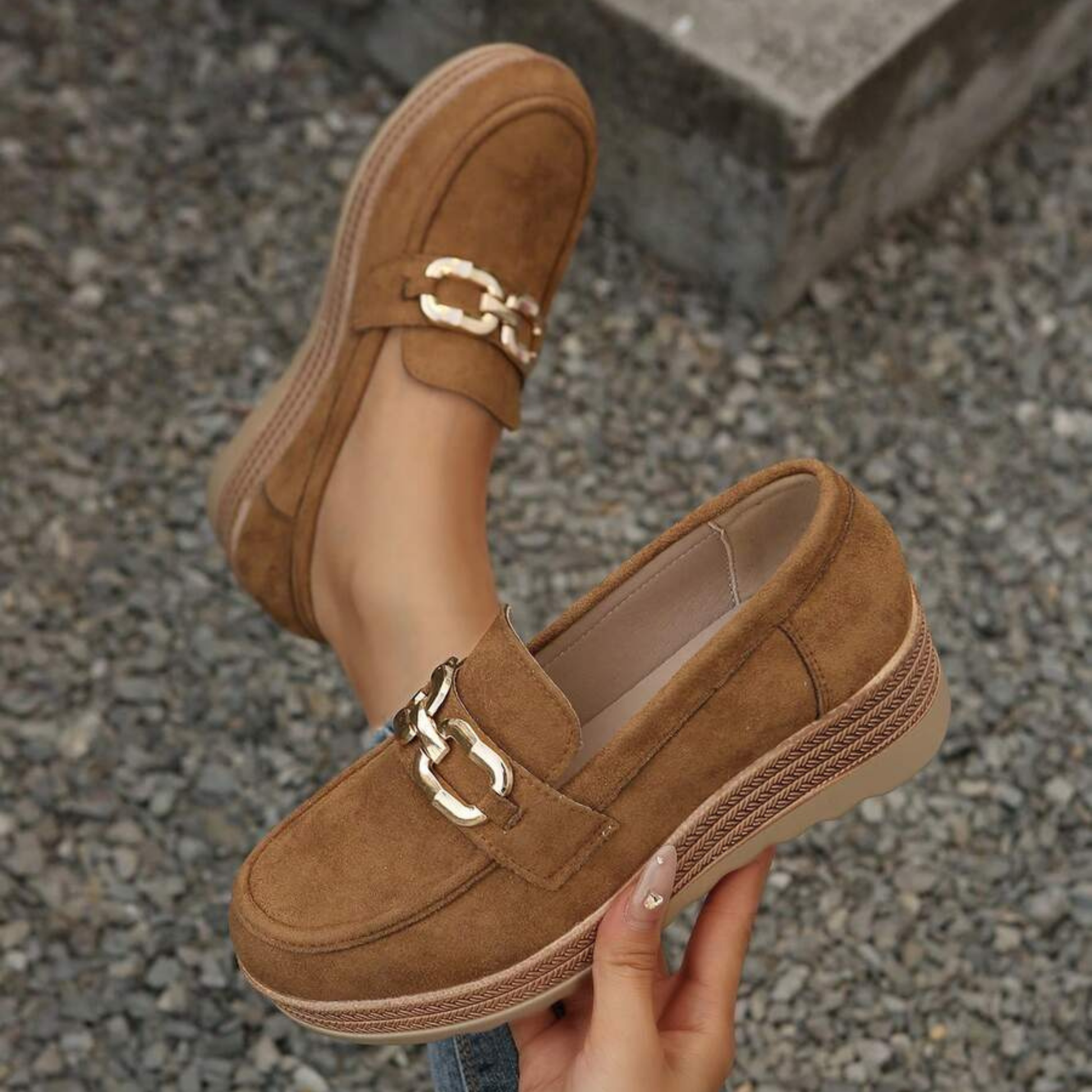 Elevate your casual footwear collection with these women's slip-on loafers, engineered for effortless comfort and timeless style. Featuring a substantial chunky sole that provides superior cushioning and durability, these retro-inspired shoes deliver both support and visual impact. The sleek solid color palette pairs seamlessly with any wardrobe, while the distinctive metal buckle accent adds a touch of refined sophistication. Designed for versatility, they transition seamlessly from home relaxation to casual outings. The slip-on construction ensures quick, hassle-free wear, making them an ideal choice for spring and autumn seasons. Perfect for those seeking reliable comfort without compromising on contemporary style.