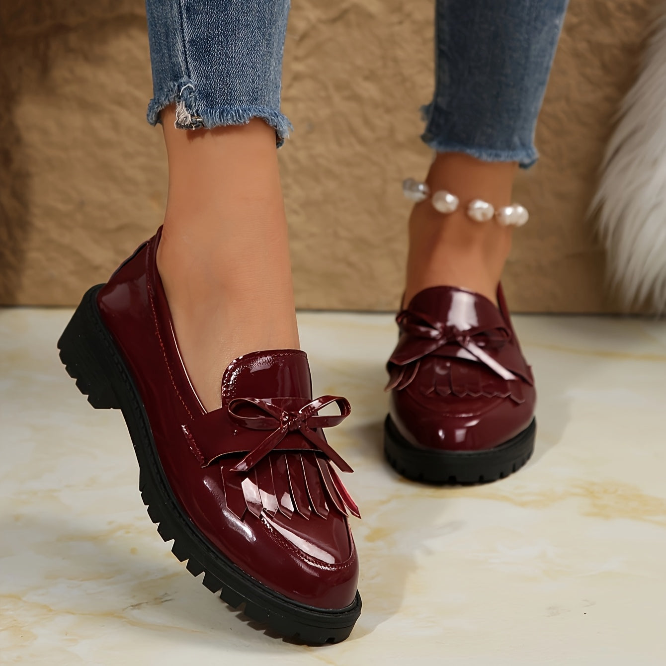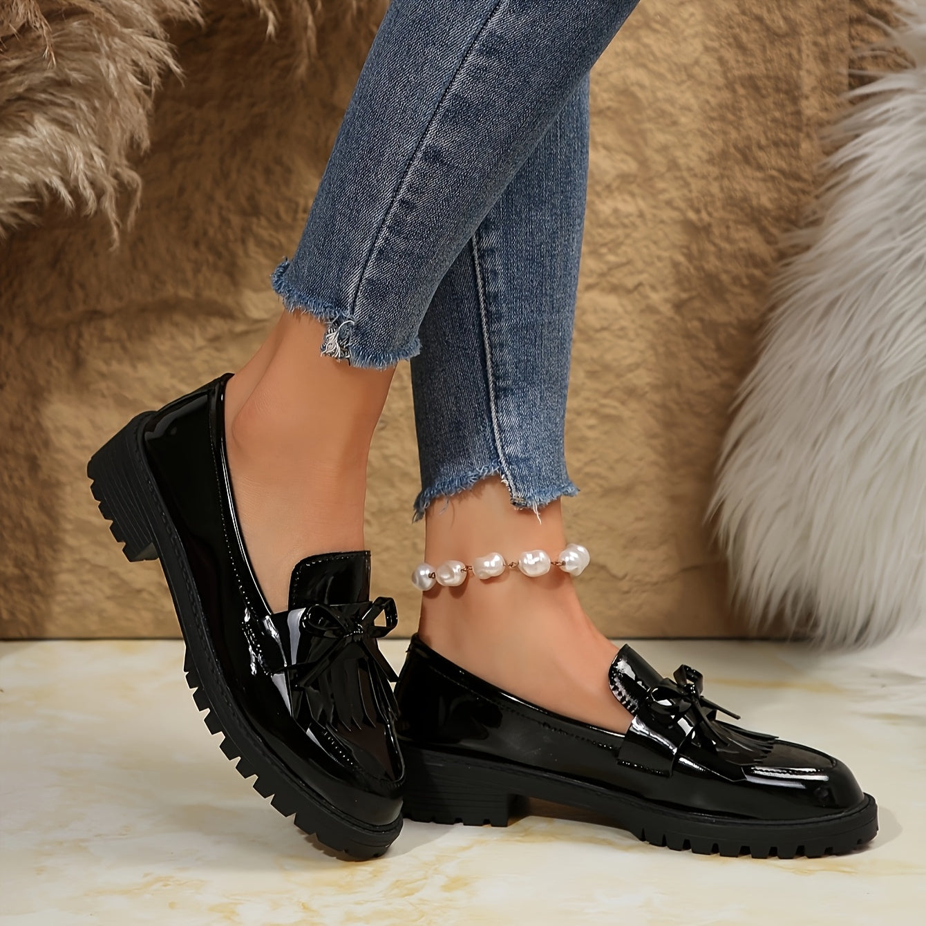 Découvrez nos mocassins classiques, parfaits pour la transition entre les saisons. Inspirés du style britannique intemporel, ces chaussures allient élégance rétro et confort quotidien. Dotées de franges distinctives et d'une coupe épurée, elles s'adaptent facilement à vos tenues de printemps et d'automne. Un incontournable pour toute femme en quête de chaussures polyvalentes et sophistiquées.
